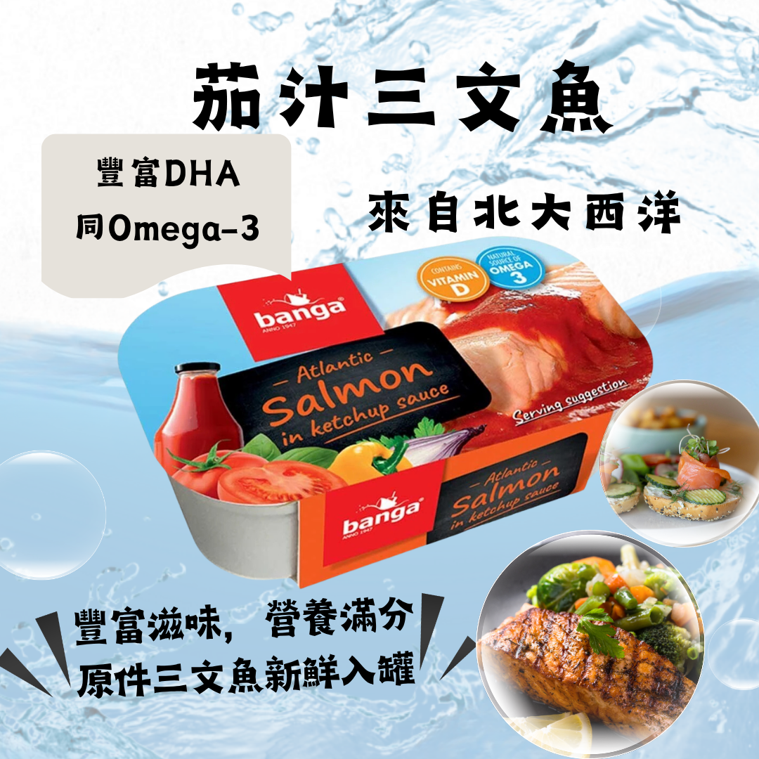banga 茄汁三⽂⿂ Atlantic salmon in ketchup sauce 120g