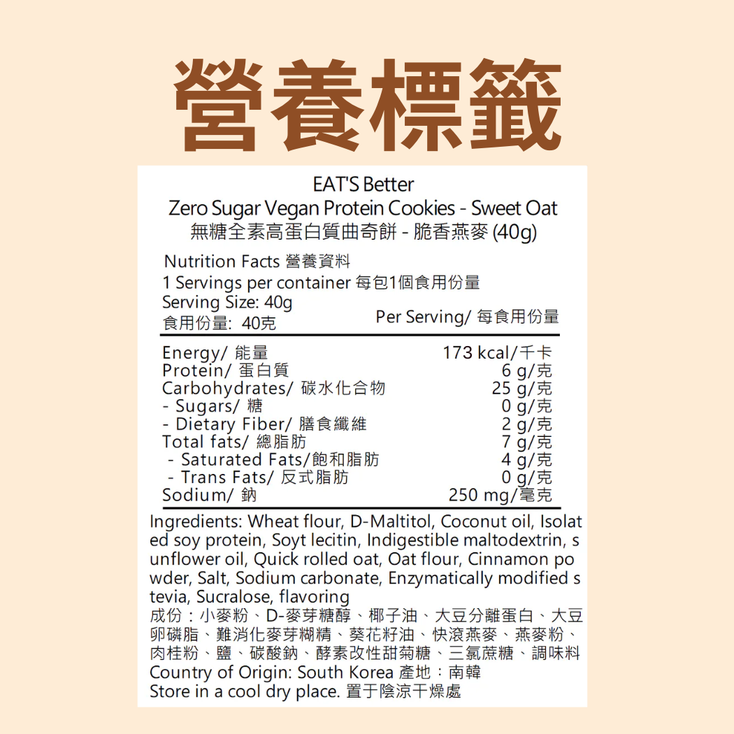 Eat’s Better 無糖脆香燕麥曲奇 40G 最佳食用日期: 25/06/2026 Sugar-Free Crunchy Oatmeal Cookies Best before date: 25/06/2026
