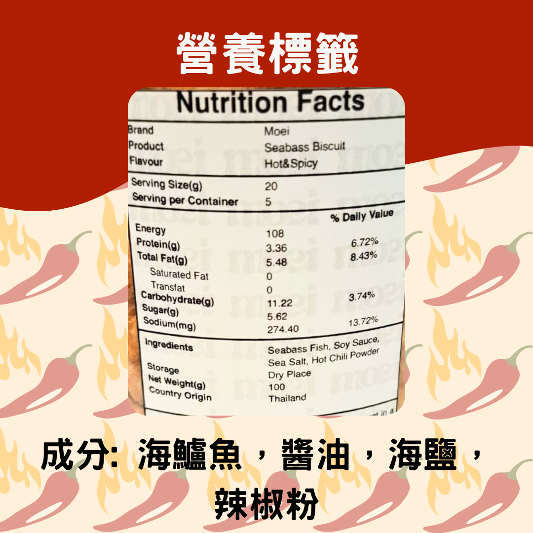 Moei 非油炸 無味精 海鱸魚脆片 火辣味 100G – Moei Non-Fried SeaBass Biscuit Spicy Flavor 100G