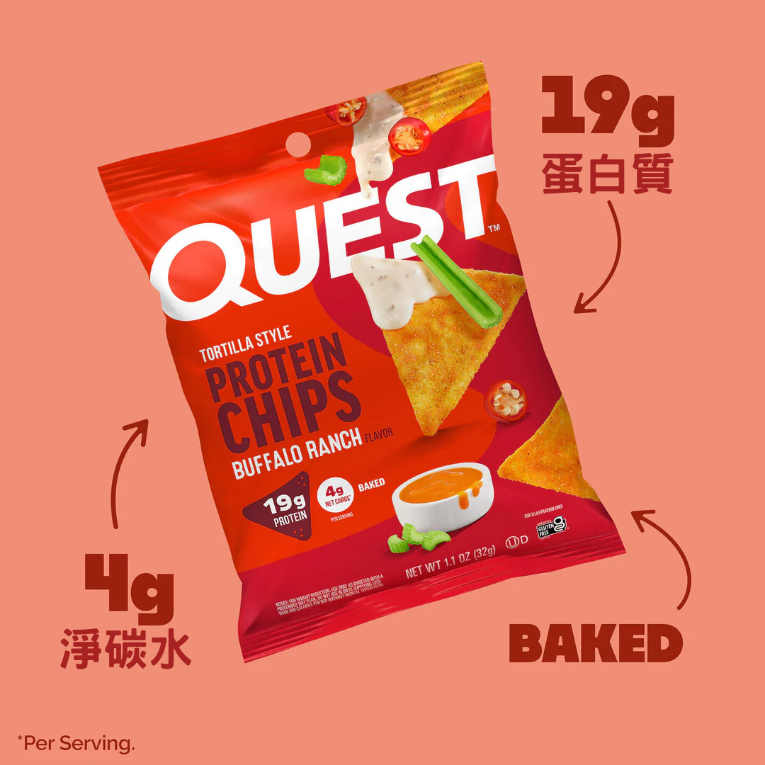 QUEST NUTRITION 蛋白脆片 水牛城牧場味 32G 健康蛋白脆片 高蛋白低碳零食 此日期前最佳: 6/10/2026 Buffalo Ranch Protein Chips 32G