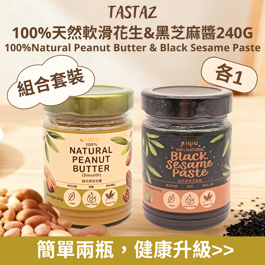 Tastaz 天然幼滑花生&黑芝麻醬240G – Natural Smooth Peanut & Black Sesame Paste Set